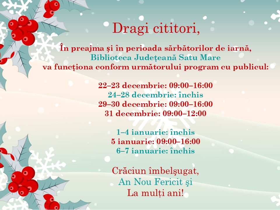 Dragi cititori și utilizatori ai Bibliotecii Județene Satu Mare,